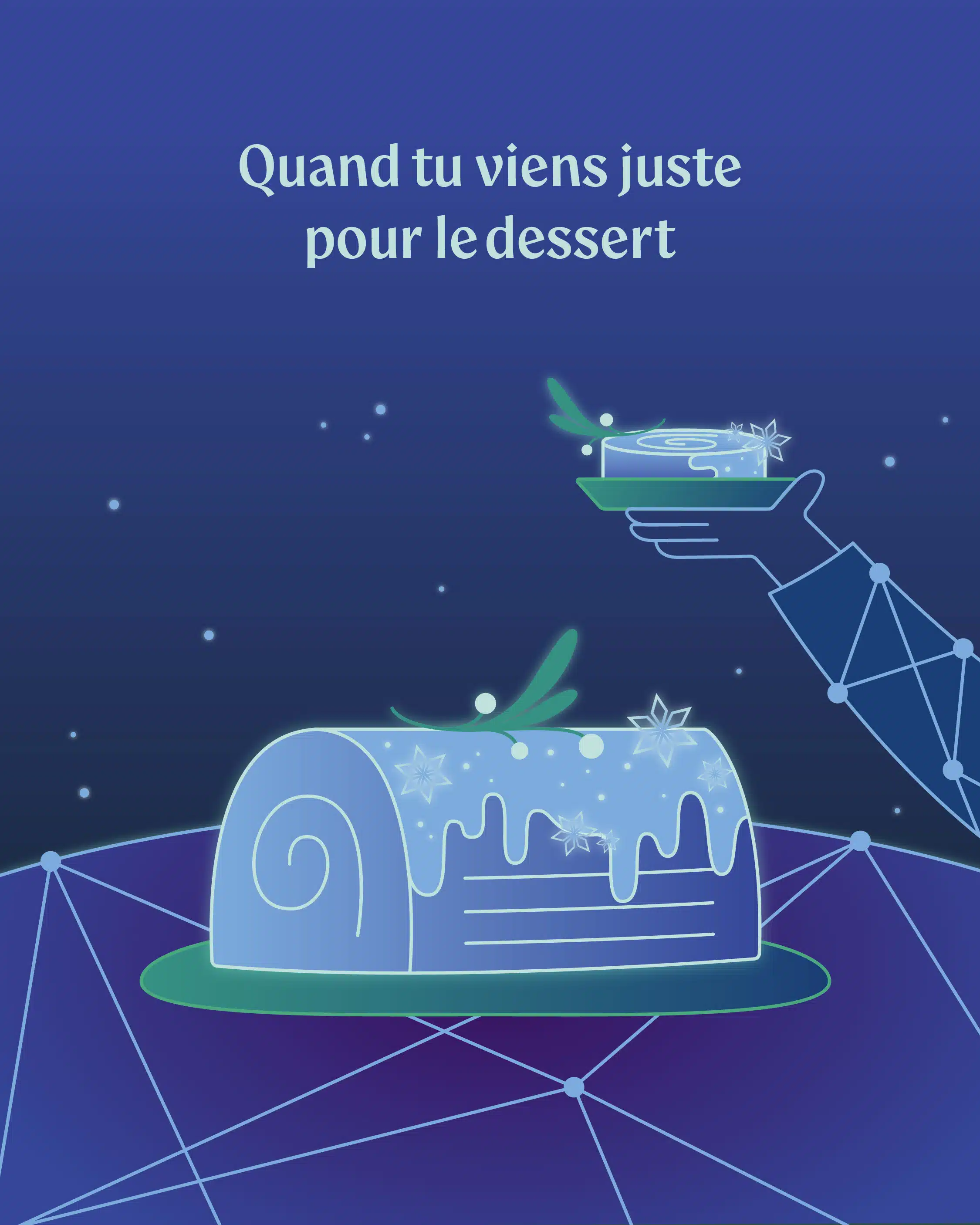 5️⃣ « Je viens, mais uniquement pour le dessert. » Parce que la bûche, c’est sacré.
