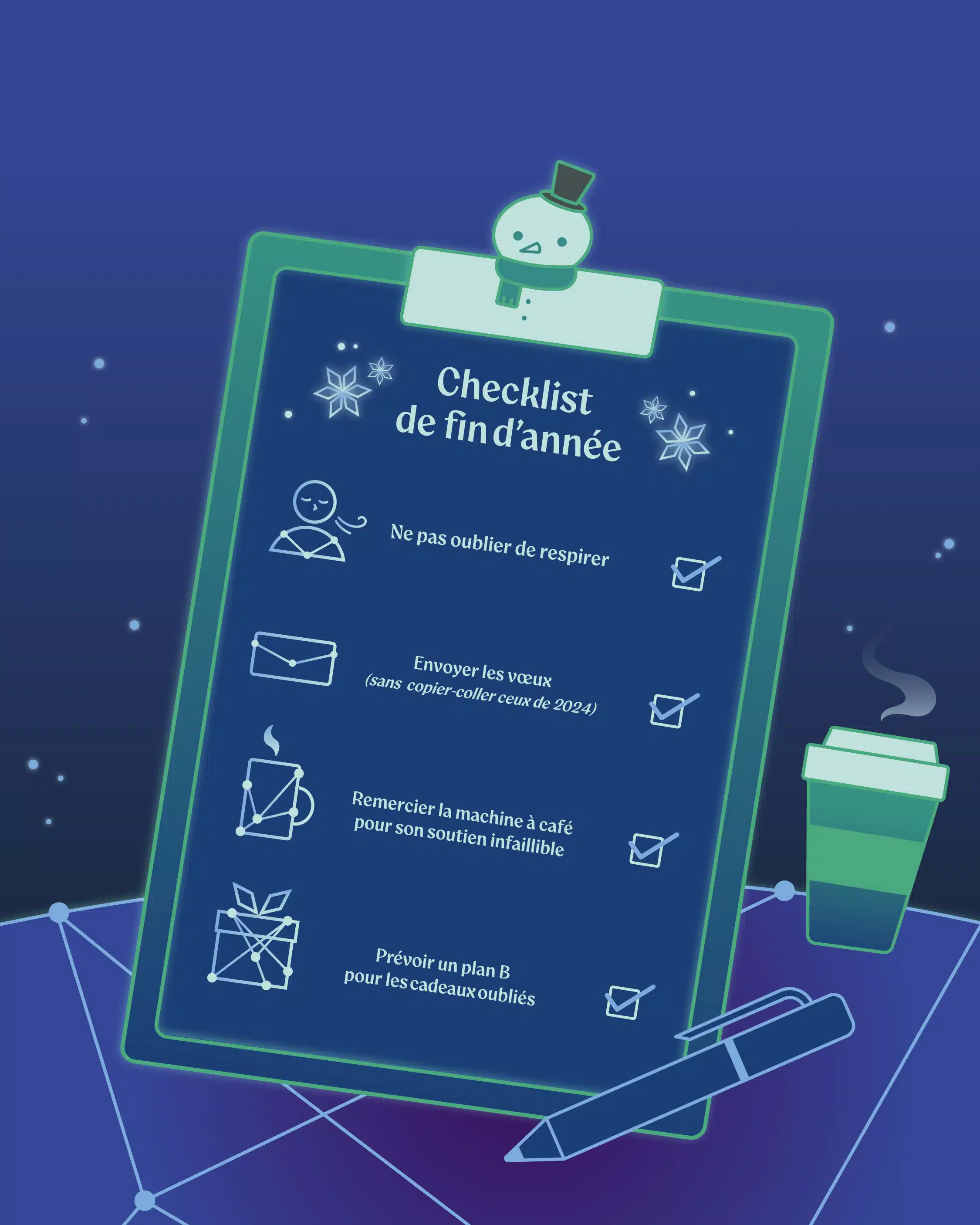 La fin d’année, c’est un peu comme un marathon : on court partout, on coche des cases, et on espère arriver au bout sans trop de dégâts. Pour vous aider à garder le cap, voici une checklist drôle (mais utile) à garder sous la main :